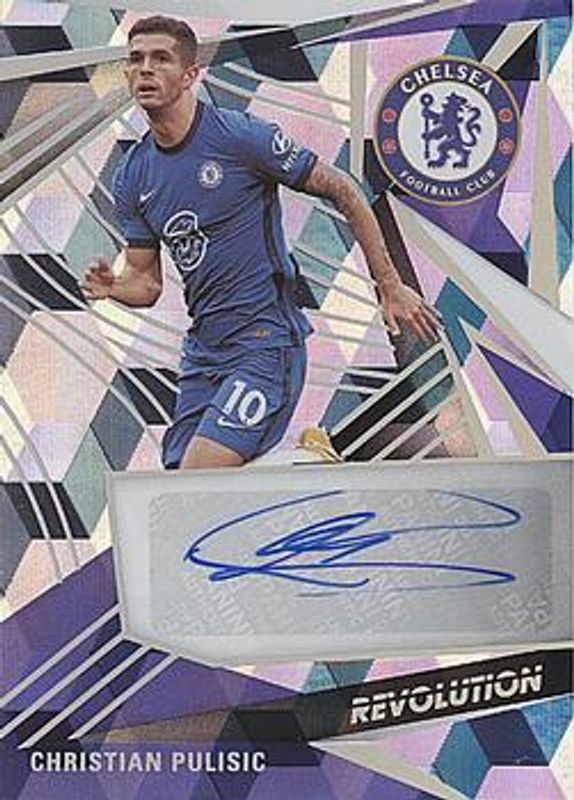 The Christian Pulisic 2020 Revolution Premier League #A-CP Autographs Cubic /50 card is 1 of 24 Christian Pulisic's card variations in the 2020 Revolution Premier League set being tracked by Sports Card Investor, including #58 Base, #58b Base, #58 Disco, #58 Fractal, and #58 Galactic.