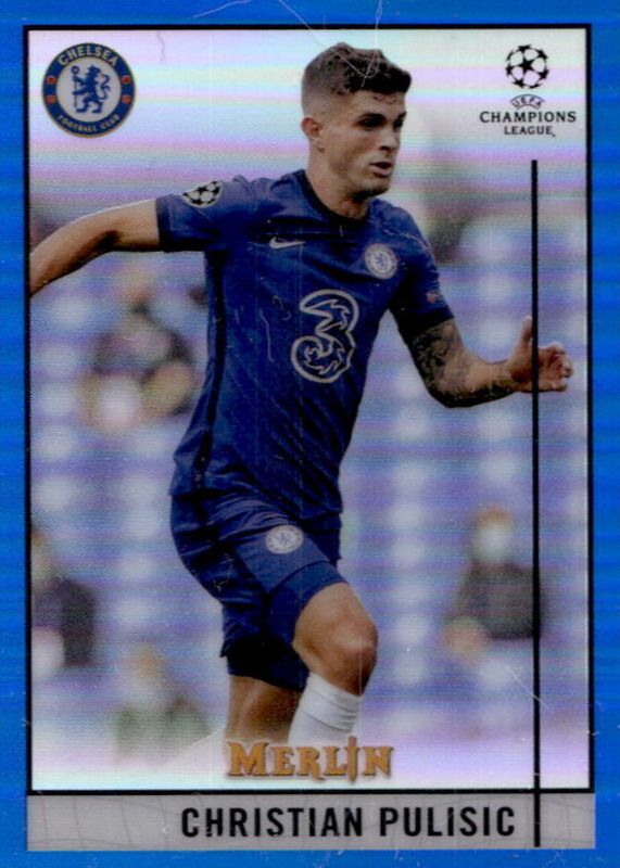 2020 Topps Merlin Collection Chrome UCL Blue Refractor /75 Christian Pulisic #21