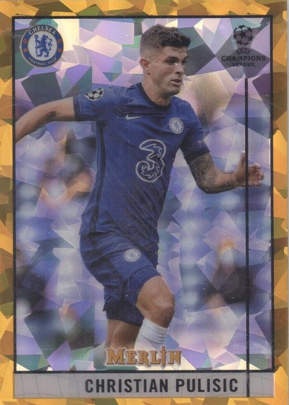 The Christian Pulisic 2020 Topps Merlin Chrome UEFA Champions League #21 Gold Atomic Refractor /50 card in Raw condition has not changed in price in the last 30 days and was last sold for $14.50 .
