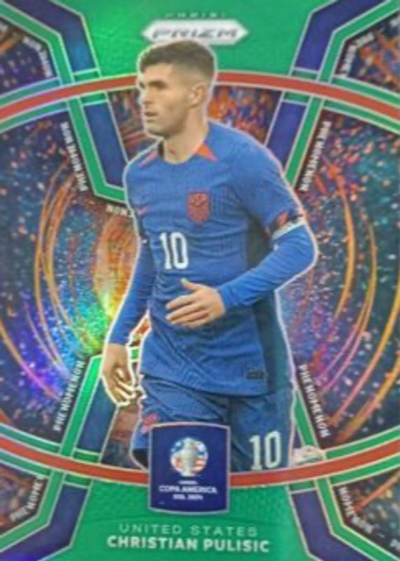 This card is 1 of 56 Christian Pulisic's card variations in the 2024 Prizm Copa America set being tracked by Sports Card Investor, including Base, Green Ice, Green Wave, Hyper, and Ice.