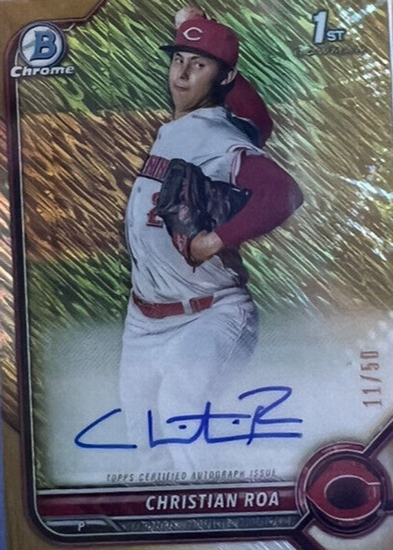 Christian Roa /50 2022 1st Bowman Chrome GOLD Shimmer Auto #BCP-130 Reds