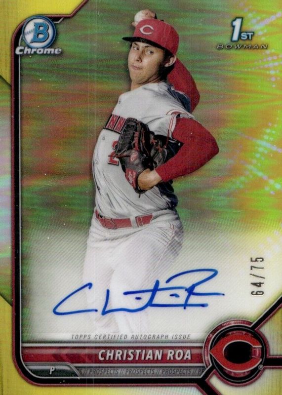2022 Bowman Chrome Yellow Christian Roa Auto /75 Cincinnati Reds #CPA-CRA