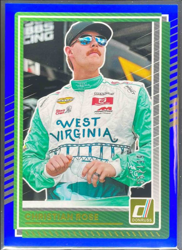 The Christian Rose 2025 Donruss NASCAR #30 Blue /199 card is 1 of 35 Christian Rose's card variations in the 2025 Donruss NASCAR set being tracked by Sports Card Investor, including Base, Laser, Red /299, Lime Green /199, and Carolina Blue Laser /99.