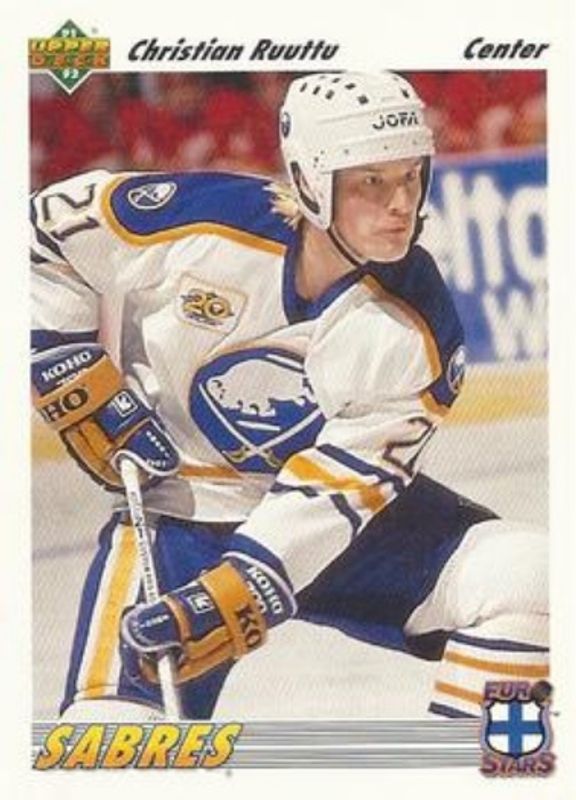The Christian Ruuttu 1991 Upper Deck #E11b Euro Stars card is 1 of 4 Christian Ruuttu's card variations in the 1991 Upper Deck set being tracked by Sports Card Investor, including #104 Base, #E11 Euro Stars, and #E11a Euro Stars.