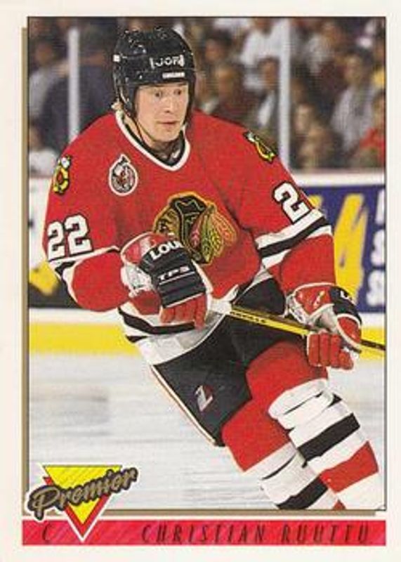 The Christian Ruuttu 1993 Topps Premier #355 Base card is 1 of 2 Christian Ruuttu's card variations in the 1993 Topps Premier set being tracked by Sports Card Investor, including Gold.