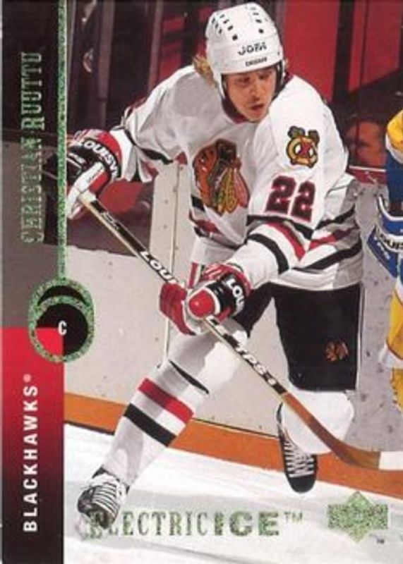 The Christian Ruuttu 1994 Upper Deck #56 Electric Ice card is 1 of 2 Christian Ruuttu's card variations in the 1994 Upper Deck set being tracked by Sports Card Investor, including Base.