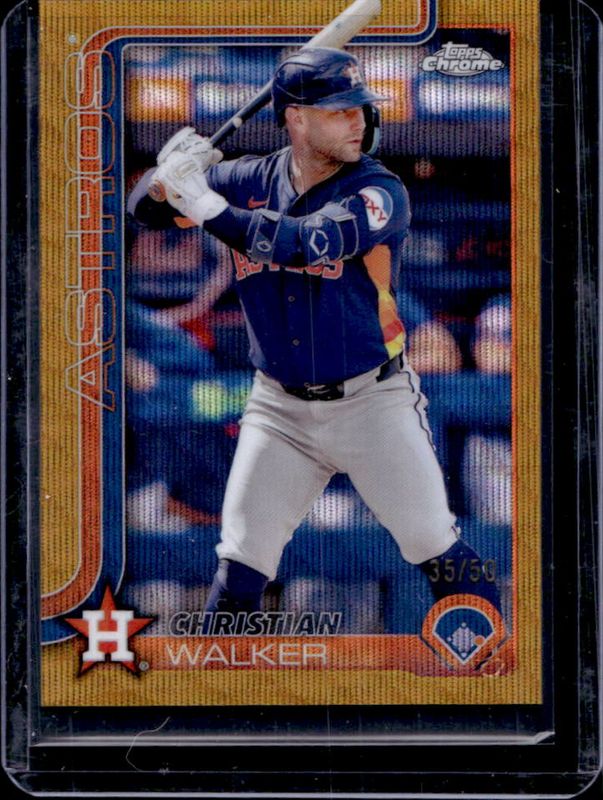 The Christian Walker 2025 Topps Chrome #279 Gold Wave Refractor /50 card is 1 of 51 Christian Walker's card variations in the 2025 Topps Chrome set being tracked by Sports Card Investor, including Base, Geometric Refractor, Lightboard Logo Variation, Negative Refractor, and Prism Refractor.