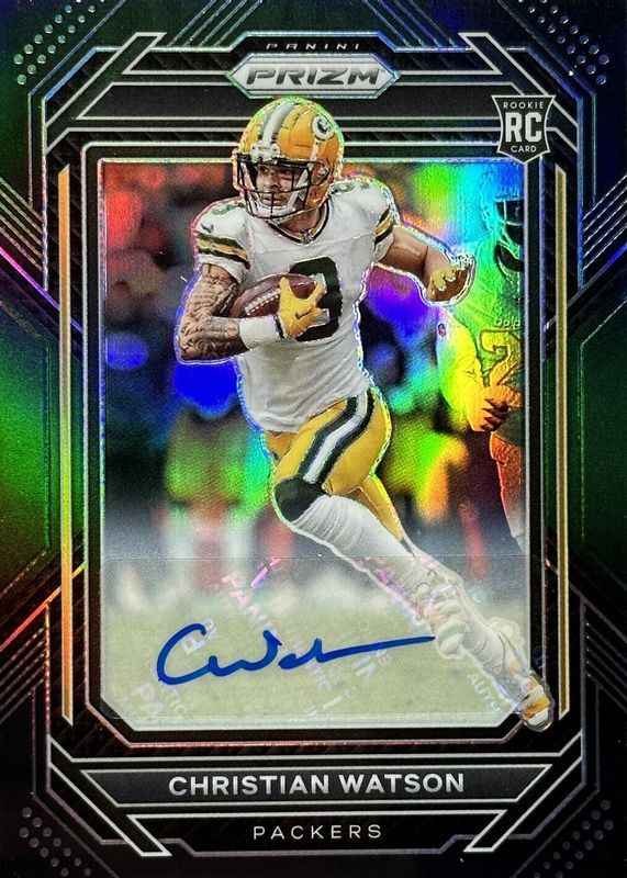 2022 PANINI CHRONICLES PRIZM BLACK CHRISTIAN WATSON GREEN AUTO RC /49 #PB-18
