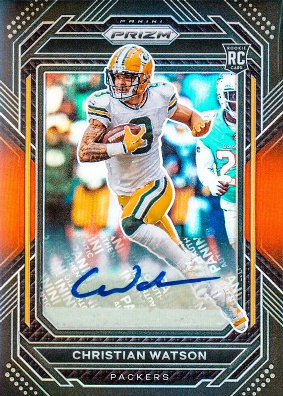 The Christian Watson 2022 Chronicles #PB-18 Prizm Black Signatures - Red (/99) Rookie card in Raw condition has not changed in price in the last 30 days and was last sold for $22.53 .