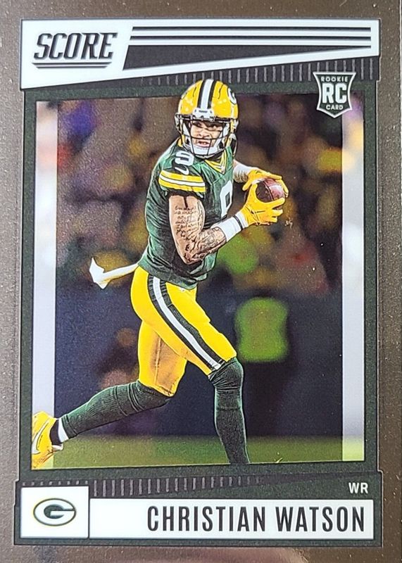 The Christian Watson 2022 Chronicles #SP-367 Score Premium Update Rookie card in Raw condition has not changed in price in the last 30 days and was last sold for $0.65 .