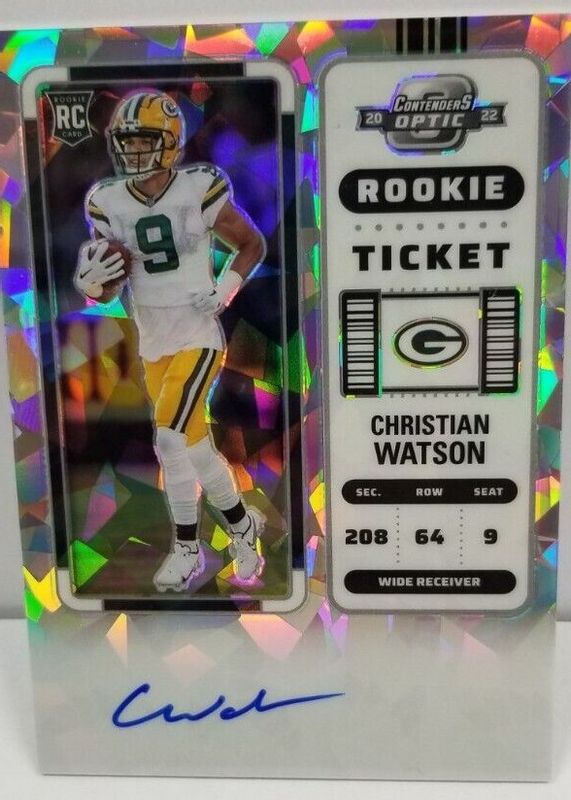Christian Watson 2022 Contenders Optic #110 Rookie Ticket Auto - Cracked Ice Ticket /22 RAW Price Guide