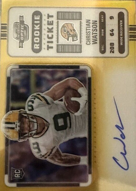 Christian Watson 2022 Contenders Optic #110 Rookie Ticket Auto - Gold /10 RAW Price Guide