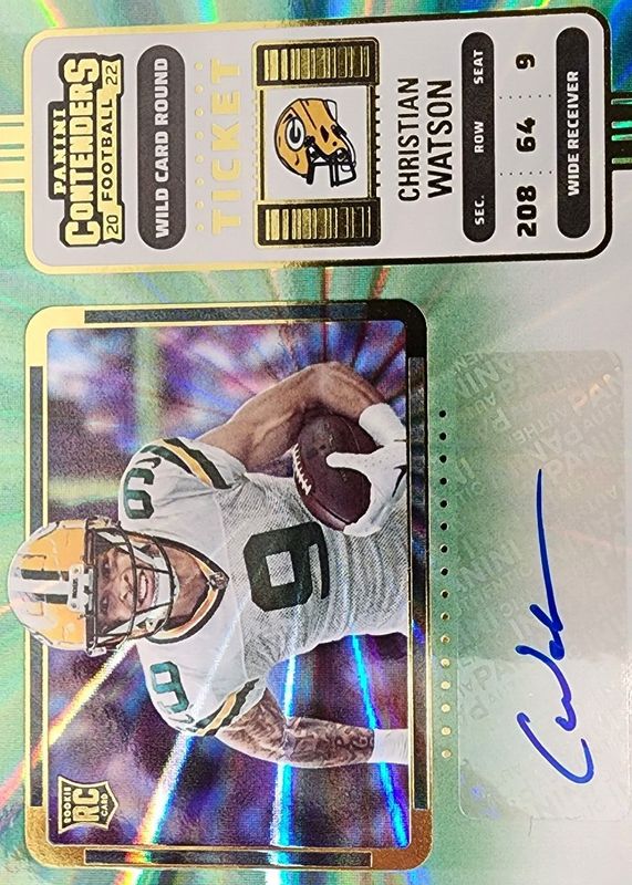 Auctions Ending Soon for Christian Watson 2022 Contenders #110 Rookie Ticket Auto Variation - Wild Card RAW