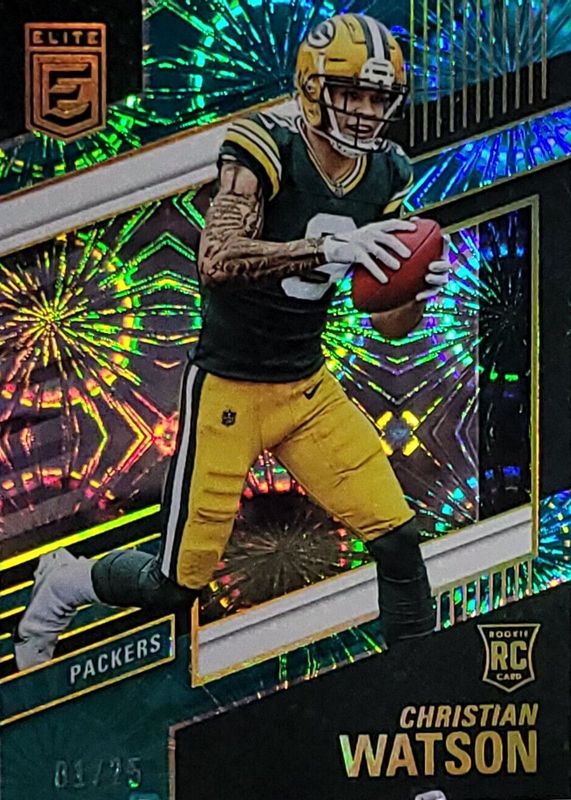 2022 Donruss Elite Christian Watson Teal Explosion /25 Football Card