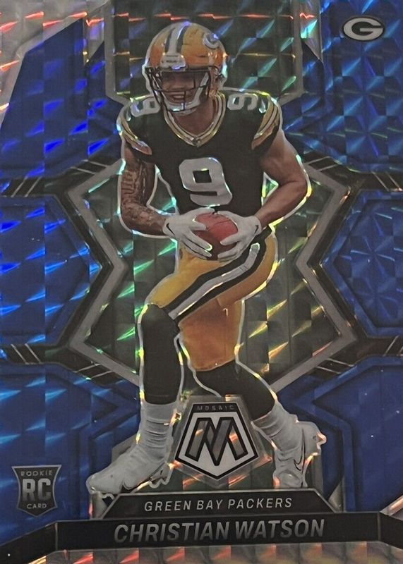 2022 Panini Mosaic CHRISTIAN WATSON RC Rookie BLUE MOSAIC PRIZM /99 #327 Packers