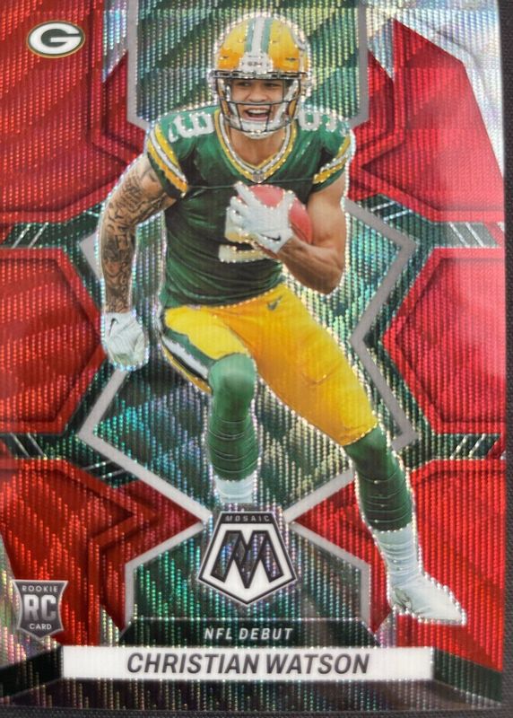 Auctions Ending Soon for Christian Watson 2022 Mosaic #281 NFL Debut - Red Wave /9 Rookie RAW
