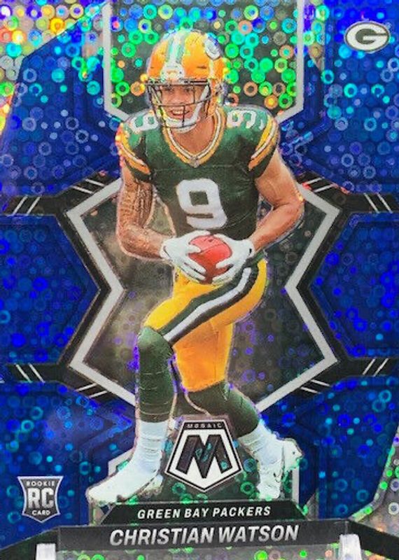 2022 Panini Mosaic Christian Watson RC No Huddle Blue Rookie /75 327 PACKERS SSP