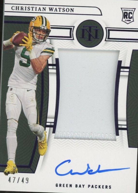 2022 National Treasures Christian Watson RC Jersey Patch Auto Purple 10/49 #174