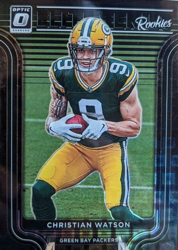 This card is 1 of 80 Christian Watson's card variations in the 2022 Optic set being tracked by Sports Card Investor, including Base, Holo, Holo Variation, Pink, and Purple Shock.