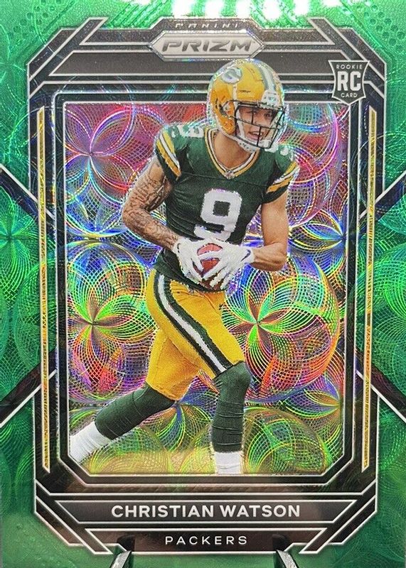 2022 Panini Prizm CHRISTIAN WATSON Rookie Card GREEN SCOPE #/75 Bay Packers 314