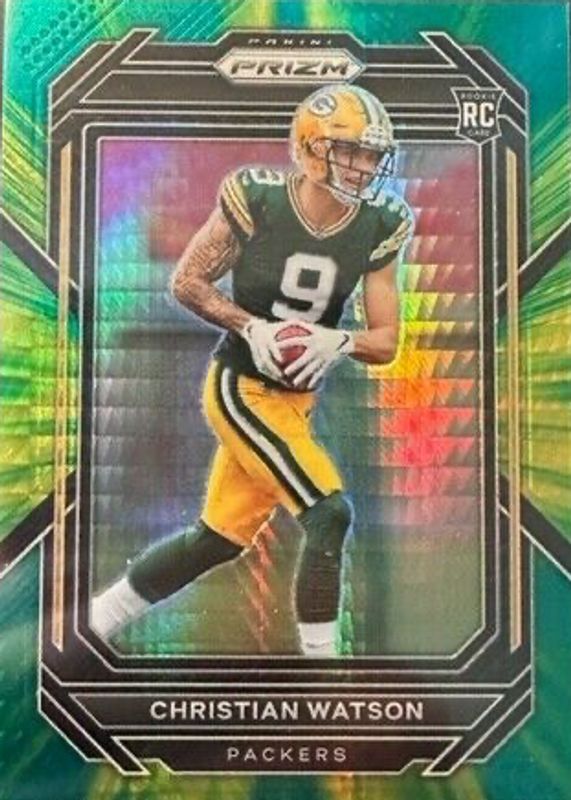 This card is 1 of 71 Christian Watson's card variations in the 2022 Prizm set being tracked by Sports Card Investor, including Base, Green, Green Ice, Light Blue, and No Huddle.