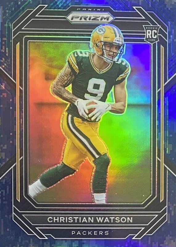 This card is 1 of 71 Christian Watson's card variations in the 2022 Prizm set being tracked by Sports Card Investor, including Base, Green, Green Ice, Light Blue, and No Huddle.