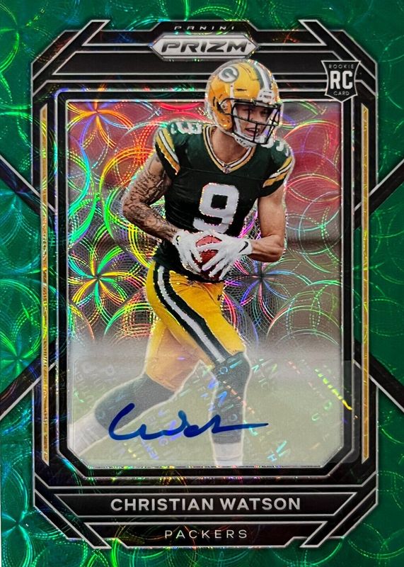 2022 Panini Prizm Green Scope Prizm Autograph Auto 314 Christian Watson 29/75 RC