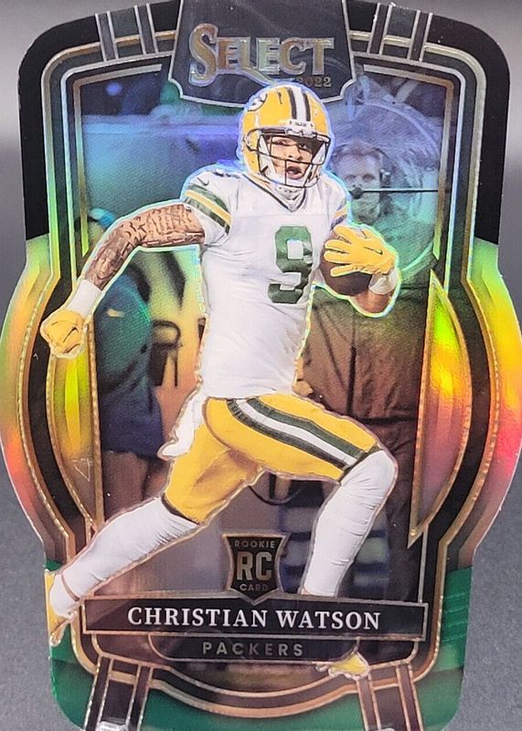 2022 Select Christian Watson RC # 265 Club Level Black Green Die Cut Green...
