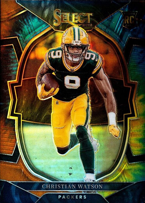 This card is 1 of 144 Christian Watson's card variations in the 2022 Select set being tracked by Sports Card Investor, including Club Level, Concourse, Suite Level, Club Level Black & Green Die-Cut, and Club Level Black & Red Die-Cut.