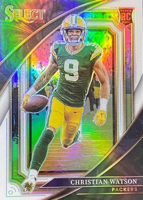 This card is 1 of 144 Christian Watson's card variations in the 2022 Select set being tracked by Sports Card Investor, including Club Level, Concourse, Suite Level, Club Level Black & Green Die-Cut, and Club Level Black & Red Die-Cut.