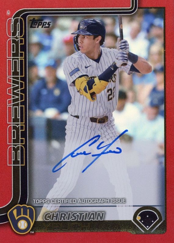 Auctions Ending Soon for Christian Yelich 2025 Topps #49 Flagship Real One Autographs - Red Foil /5 RAW