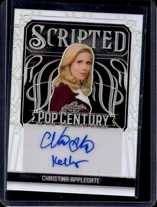 The Christina Applegate 2024 Leaf Metal Pop Century #SC-CA3 Scripted Autographs - Prismatic Silver /12 card is 1 of 259 Christina Applegate's card variations in the 2024 Leaf Metal Pop Century set being tracked by Sports Card Investor, including Starlet Autographs Crystal - Gold, Starlet Autographs Diagonal - Shimmer Gold, Starlet Autographs Kaleidoscope - Gold, Starlet Autographs Mojo - Black, and Starlet Autographs Mojo - Gold.