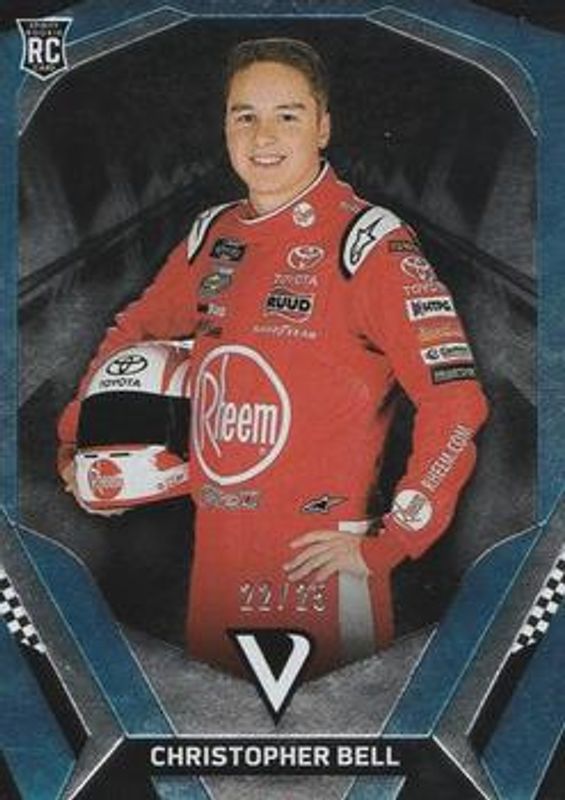 The Christopher Bell 2018 Victory Lane NASCAR #35 Blue /25 card is 1 of 15 Christopher Bell's card variations in the 2018 Victory Lane NASCAR set being tracked by Sports Card Investor, including Base, Silver, Gold /99, Red /49, and Green /5.