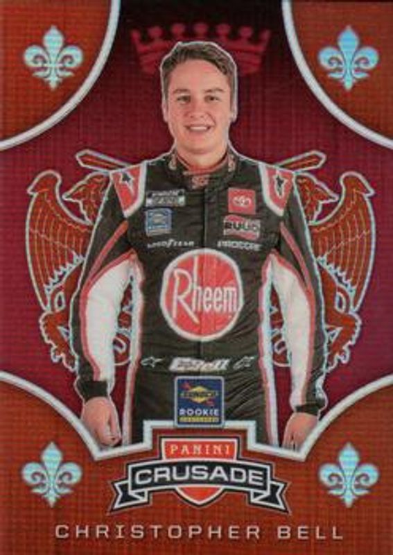 The Christopher Bell 2020 Chronicles NASCAR #12 Crusade Red /99 card is 1 of 118 Christopher Bell's card variations in the 2020 Chronicles NASCAR set being tracked by Sports Card Investor, including Base, Blue /199, Red /99, Purple /25, and Gold /10.
