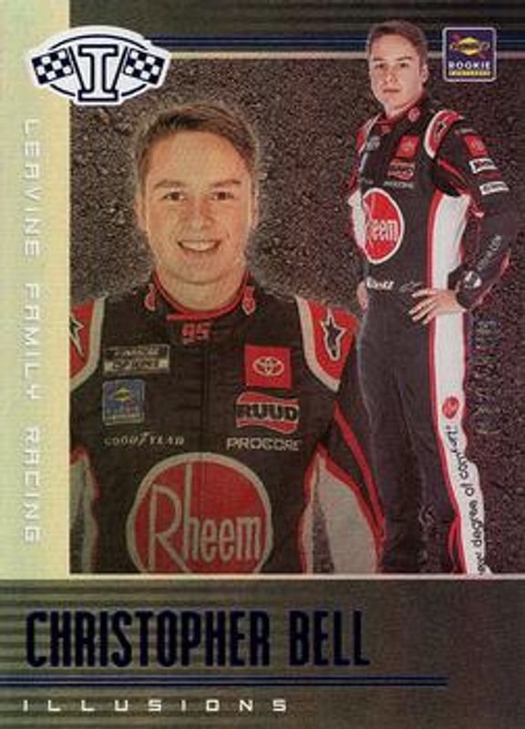 The Christopher Bell 2020 Chronicles NASCAR #11 Illusions Blue /199 card is 1 of 118 Christopher Bell's card variations in the 2020 Chronicles NASCAR set being tracked by Sports Card Investor, including Base, Blue /199, Red /99, Purple /25, and Gold /10.
