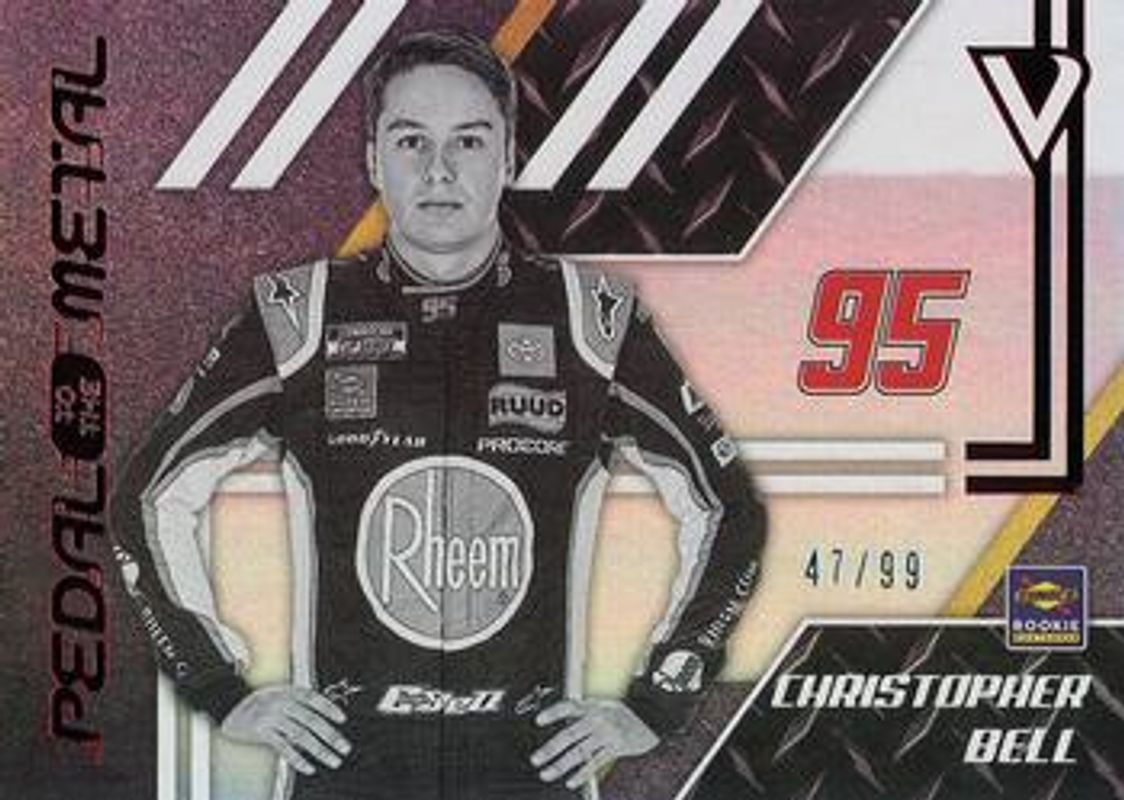 The Christopher Bell 2020 Chronicles NASCAR #36 Pedal to the Metal Red /99 card is 1 of 118 Christopher Bell's card variations in the 2020 Chronicles NASCAR set being tracked by Sports Card Investor, including Base, Blue /199, Red /99, Purple /25, and Gold /10.