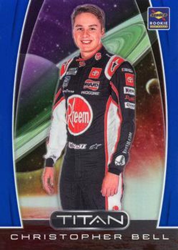The Christopher Bell 2020 Chronicles NASCAR #22 Titan Blue /199 card is 1 of 118 Christopher Bell's card variations in the 2020 Chronicles NASCAR set being tracked by Sports Card Investor, including Base, Blue /199, Red /99, Purple /25, and Gold /10.