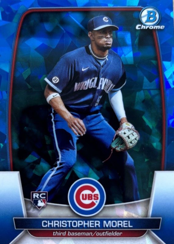 Christopher Morel's Baseball cards are available in at least 52 sets. Christopher Morel's biggest 7-day price movers are 2023 Bowman Chrome Sapphire Edition #71 Base, 2023 Topps #HA-19 Home Field Advantage /(SSP), and 2023 Topps Finest #46 Green Refractor /99.