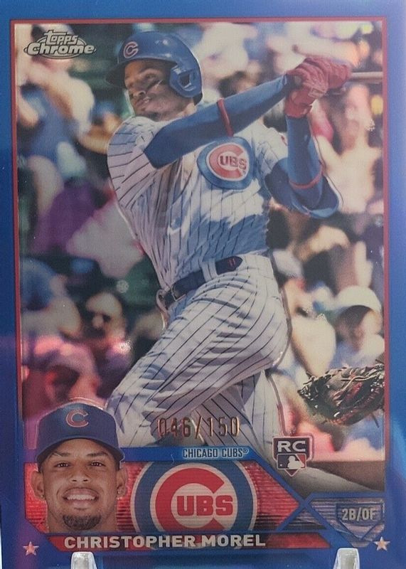 The Christopher Morel 2023 Topps Chrome #198 Blue Refractor /150 Rookie card in Raw condition has not changed in price in the last 30 days and was last sold for $1.25 .