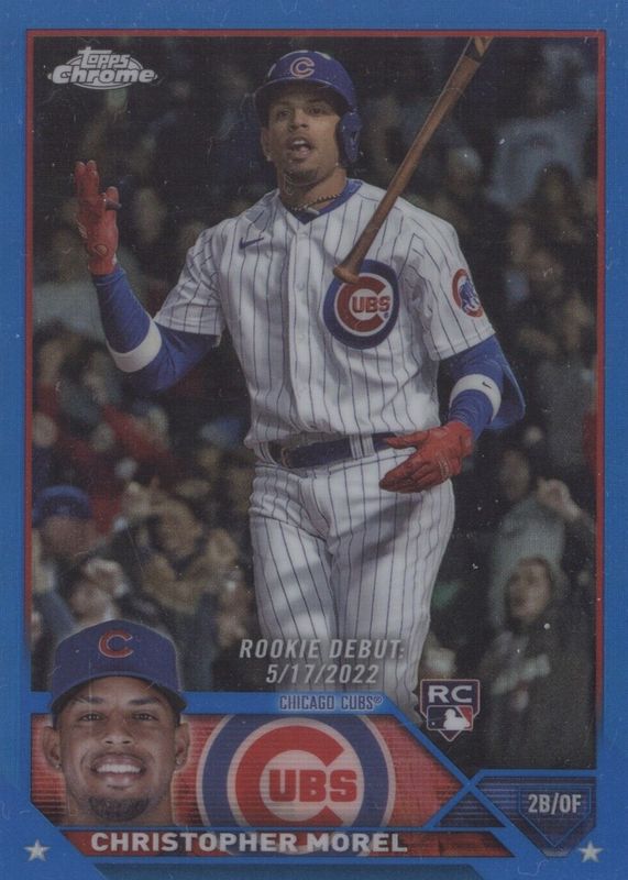 The Christopher Morel 2023 Topps Chrome Update #USC106 Rookie Debut - Blue Refractor /150 card in Raw condition has not changed in price in the last 30 days and was last sold for $7.00 .