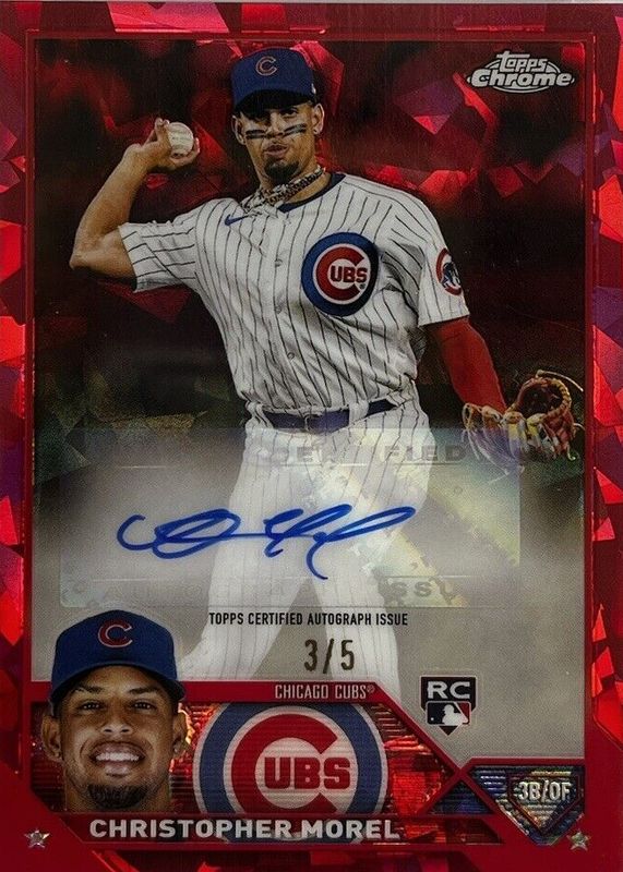 The Christopher Morel 2023 Topps Chrome Update Sapphire Edition #USA-CM Autographs - Red /5 Rookie card in Raw condition has not changed in price in the last 30 days and was last sold for $415.00 .
