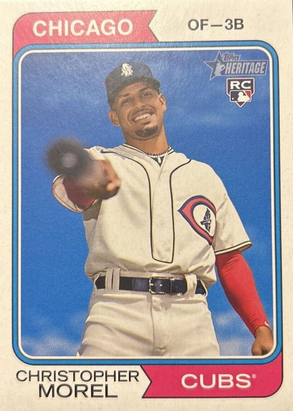 The Christopher Morel 2023 Topps Heritage #110 Throwback Uniform Variation Rookie card in Raw condition has not changed in price in the last 30 days and was last sold for $515.99 .