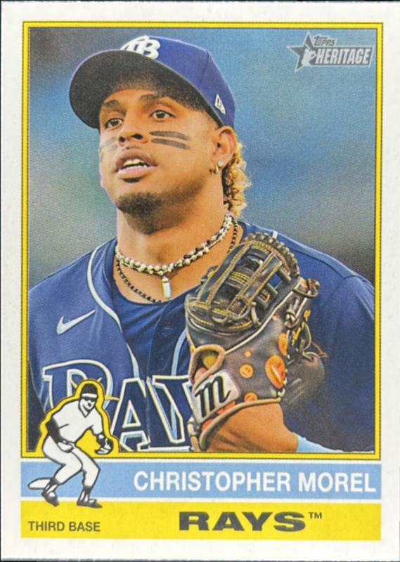 The Christopher Morel 2025 Topps Heritage #299 Base card is 1 of 24 Christopher Morel's card variations in the 2025 Topps Heritage set being tracked by Sports Card Investor, including Black Border, Dark Blue Border, Dark Green Border, Dark Yellow Border, and Light Purple Border.
