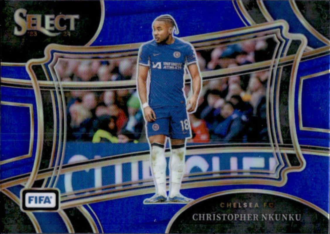 The Christopher Nkunku 2023 Select FIFA #240 Blue card is 1 of 48 Christopher Nkunku's card variations in the 2023 Select FIFA set being tracked by Sports Card Investor, including #105 Base, #240 Base, #105 Blue, #105 Checkerboard, and #240 Checkerboard.