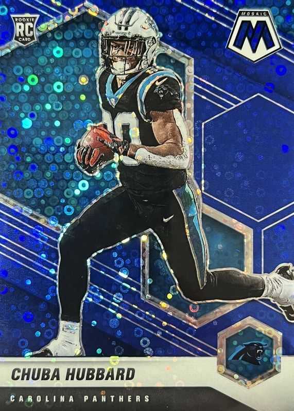 2021 Panini Mosaic Chuba Hubbard #325 RC NO HUDDLE BLUE PRIZM 31/75 PANTHERS