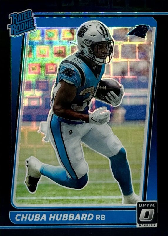 This card is 1 of 34 Chuba Hubbard's card variations in the 2021 Optic set being tracked by Sports Card Investor, including Base, Blue Hyper, Blue Scope, Bronze, and Green Velocity.