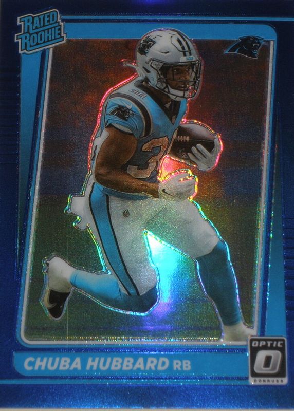 The Chuba Hubbard 2021 Optic #225 Blue /179 Rookie card in Raw condition has not changed in price in the last 30 days and was last sold for $6.25 .