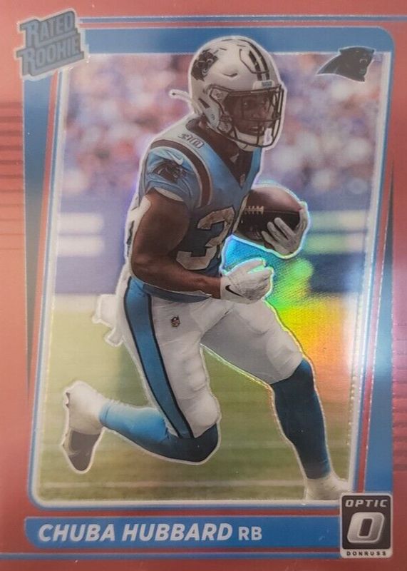 2021 Donruss Optic Red Prizm #225 Chuba Hubbard Panthers RC Rated Rookie /99