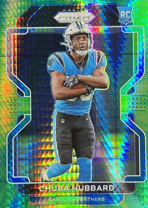 This card is 1 of 62 Chuba Hubbard's card variations in the 2021 Prizm set being tracked by Sports Card Investor, including Base, Disco, Green, Green Ice, and Lazer.