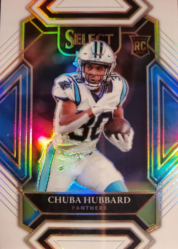 This card is 1 of 131 Chuba Hubbard's card variations in the 2021 Select set being tracked by Sports Card Investor, including Club Level, Concourse, Field Level, Premier Level, and Club Level Black & Gold Die-Cut.